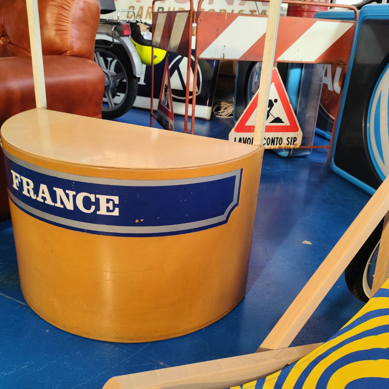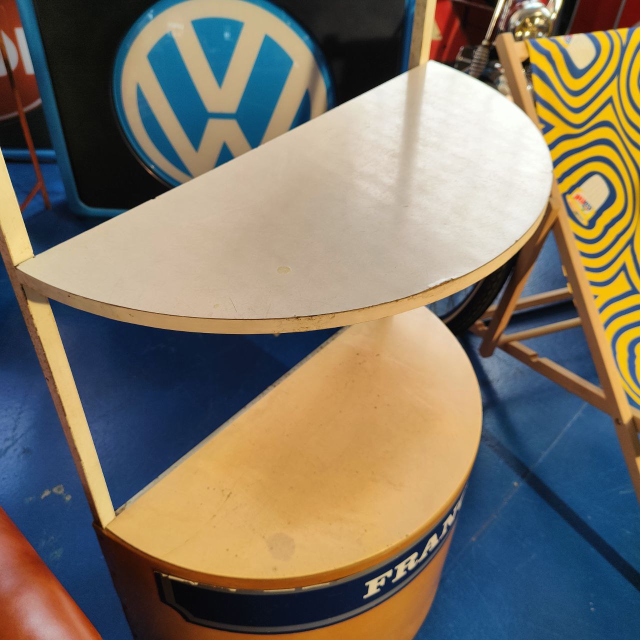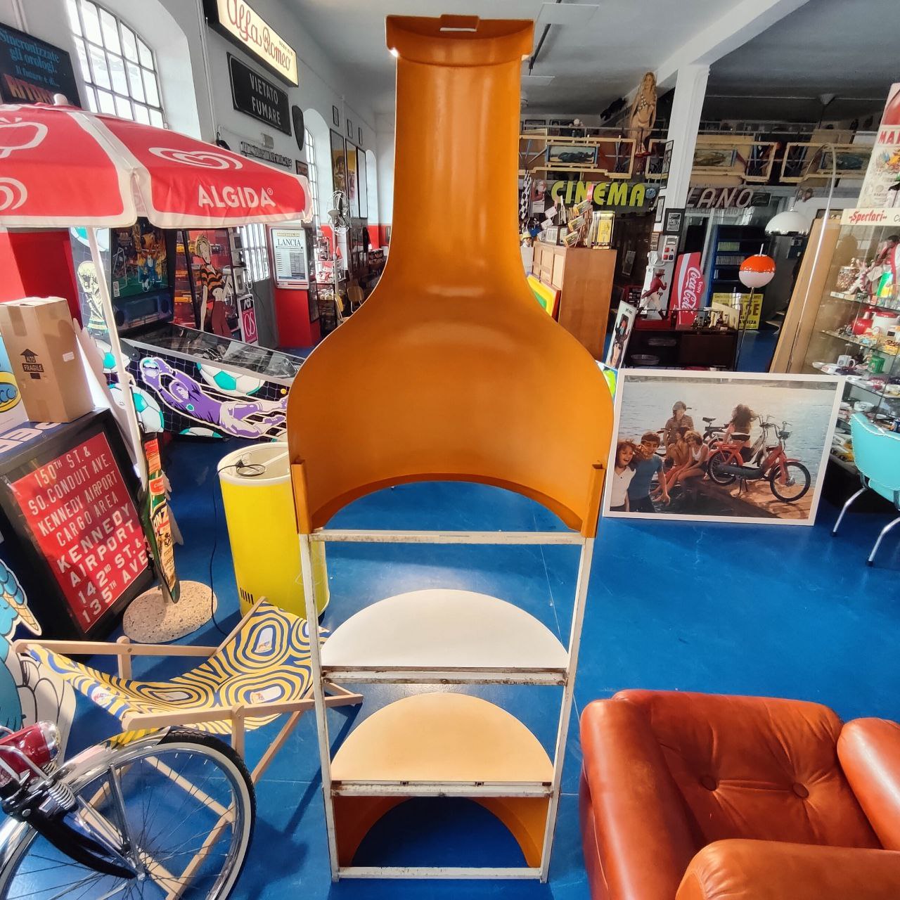 Realizzato in plastica con struttura in metallo e mensola in legno