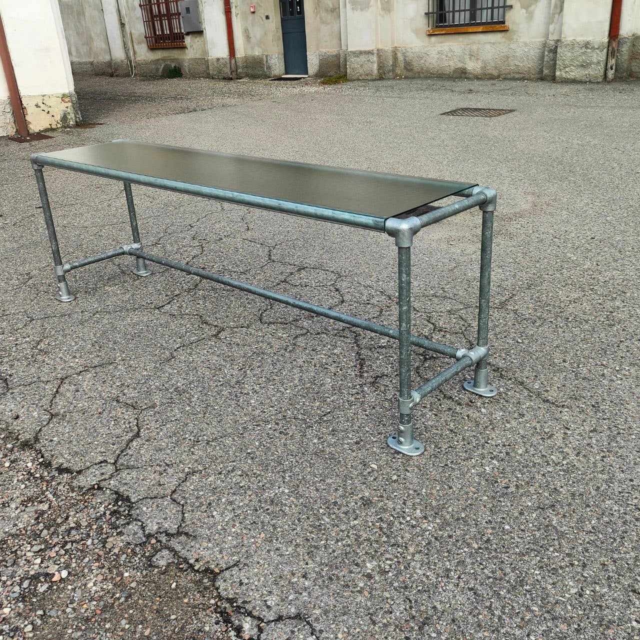 Tavolo di design con poggiapiedi realizzato da Kee Klamp