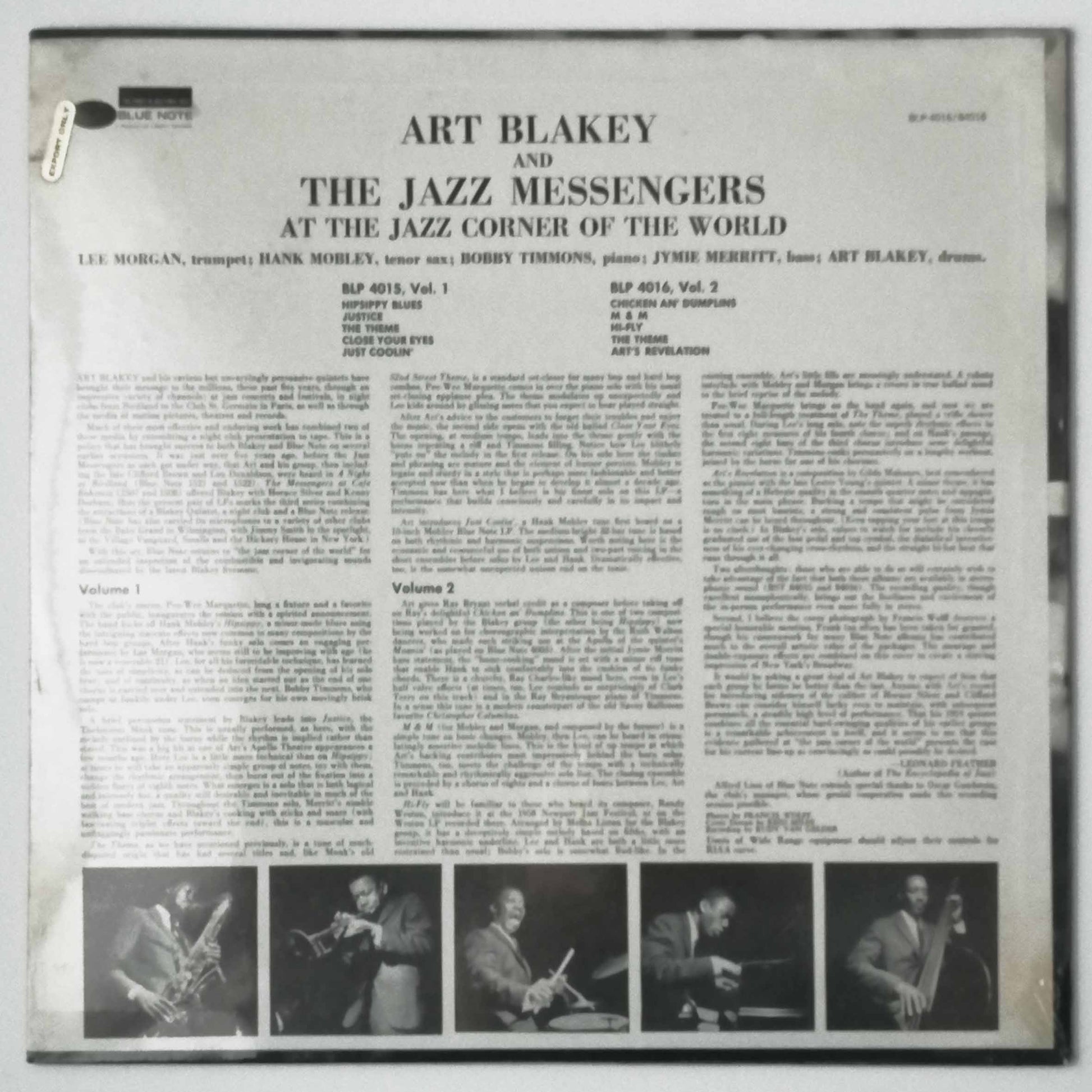 ART BLAKEY AND AT THE JAZZ MESSENGERS AT THE JAZZ CORNER OF THE WORLD LP, Album