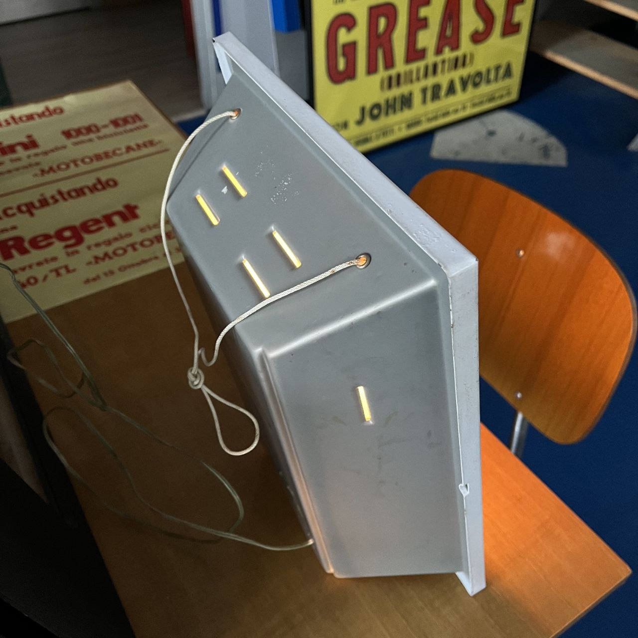 Insegna da appoggio o da muro, retroilluminata e realizzata in plastica con cornice in metallo