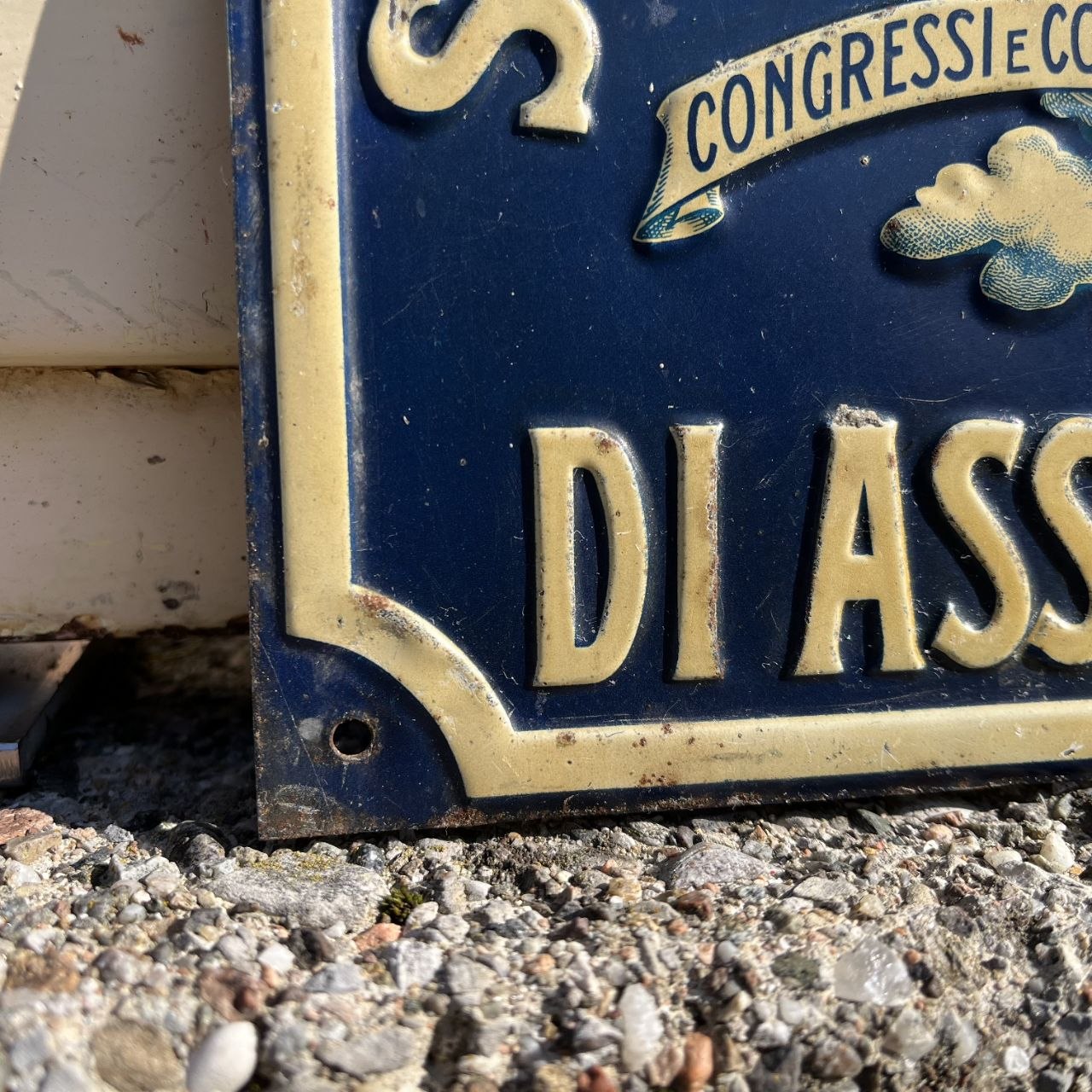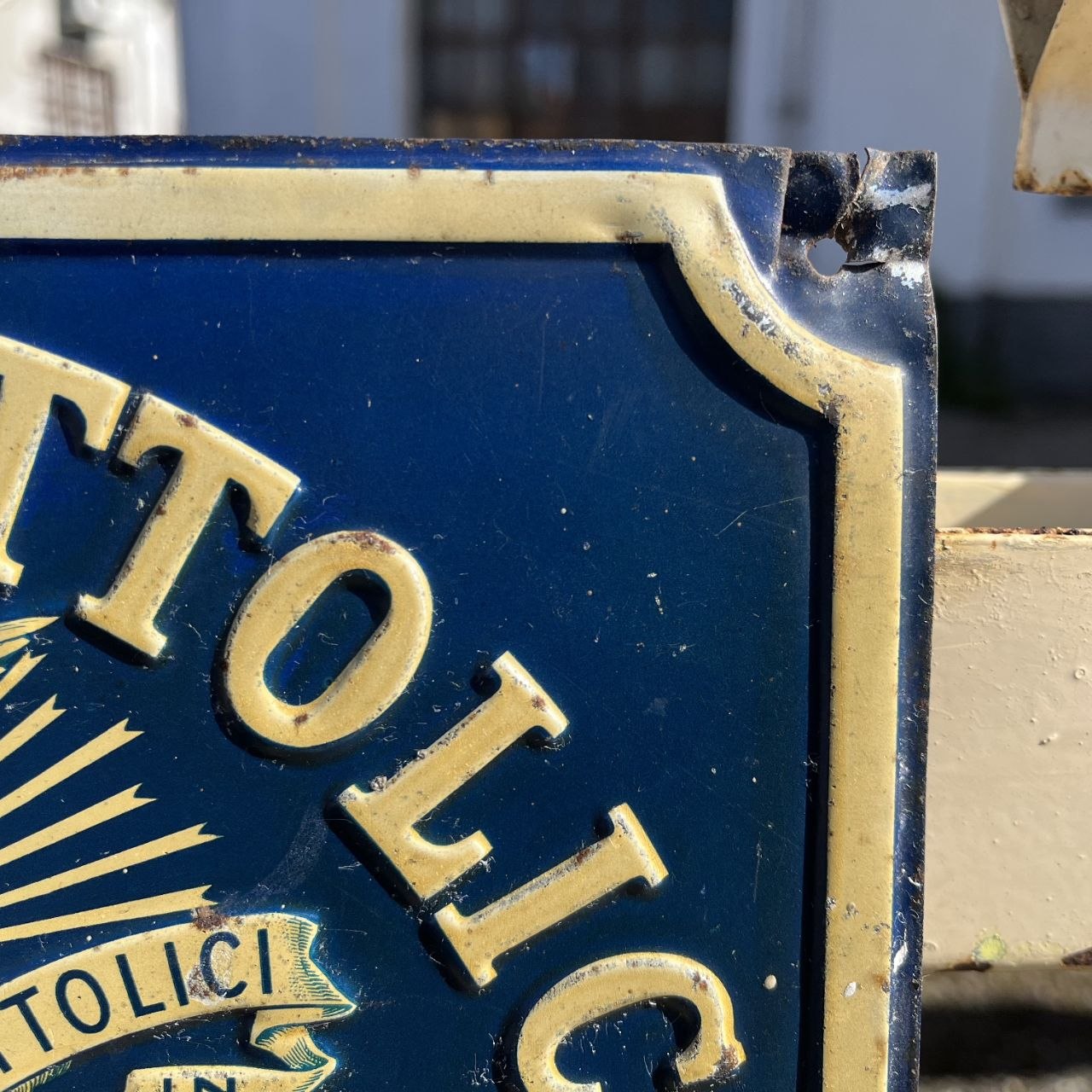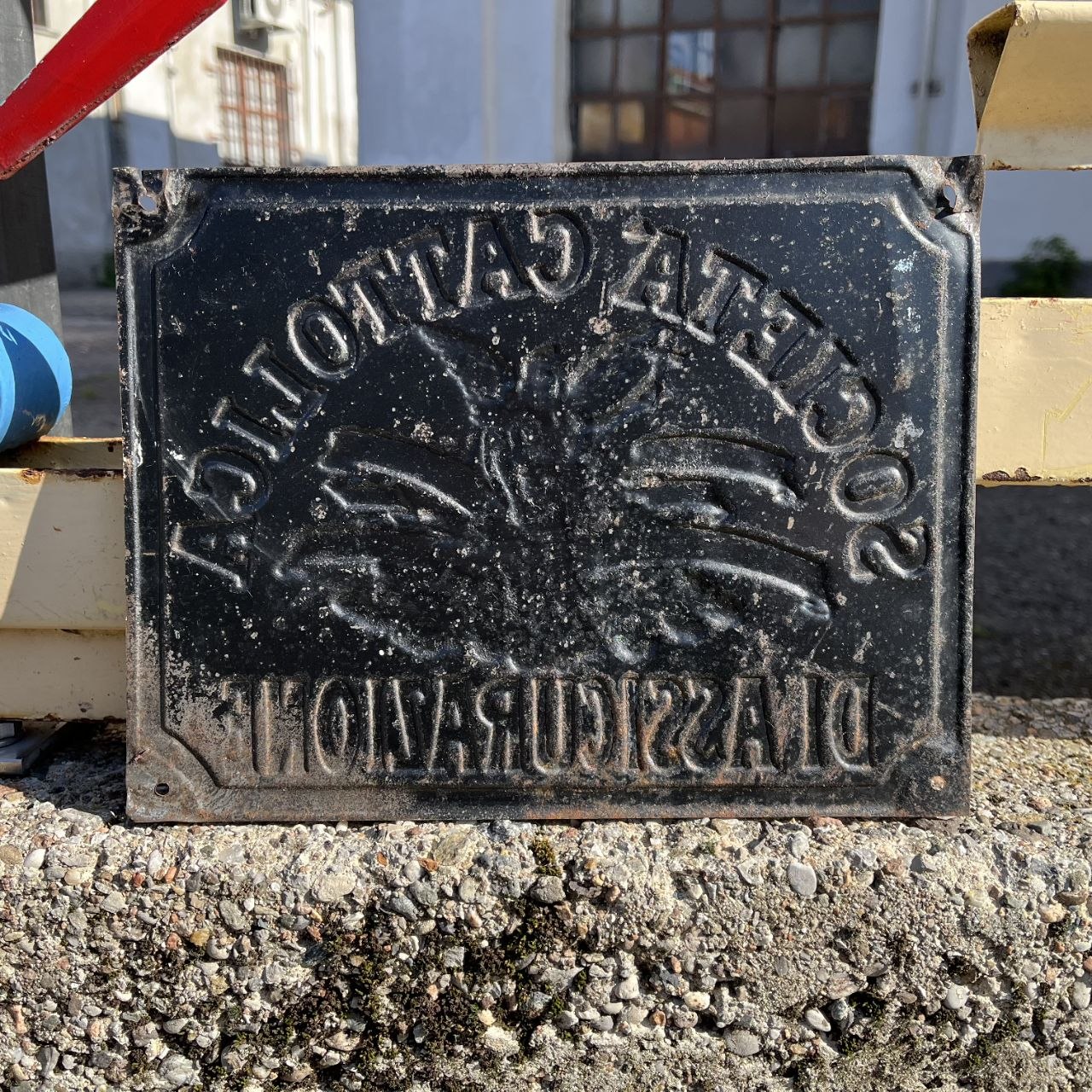 "Targa antincendio", che veniva affissa all'esterno degli edifici assicurati per segnalare la protezione della compagnia (in questo caso la Società Cattolica, legata all'Opera dei Congressi)