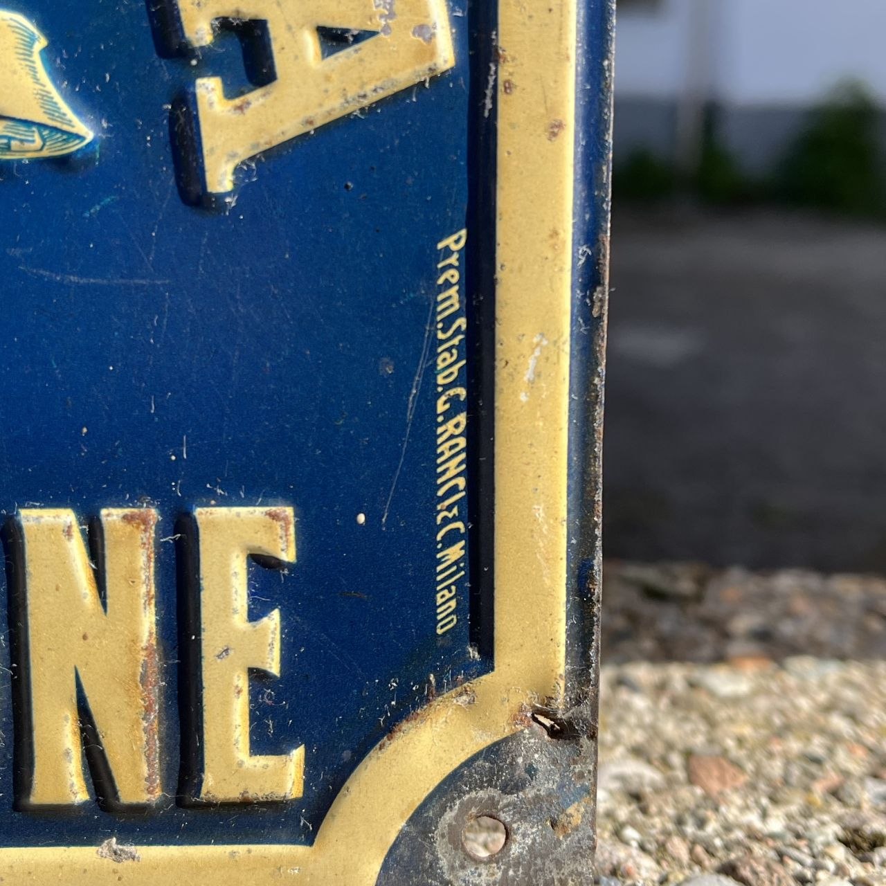 Insegna in metallo serigrafato a rilievo